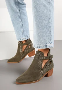 Zielone Botki Vices na Słupku w Stylu Kowbojek z Metalicznymi Aplikacjami i Wycięciami Virori