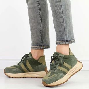 na chłodną jesień oraz zimę to połączenie stylu, wygody i ciepła, idealne dla kobiet, które cenią funkcjonalne rozwiązania na co dzień. Cholewka tych butów wykonana jest z wysokiej jakości naturalnej skóry zamszowej, co nadaje im elegancki, a jednocześnie nowoczesny wygląd. Okrągły nosek zapewnia komfort noszenia, a klasyczne sznurowanie pozwala na idealne dopasowanie butów do stopy. Wkładka oraz wnętrze sneakersów ocieplone jest delikatnym, cienkim kożuszkiem, który gwarantuje komfort termiczny podczas chłodniejszych dni. Dzięki temu sneakersy doskonale sprawdzą