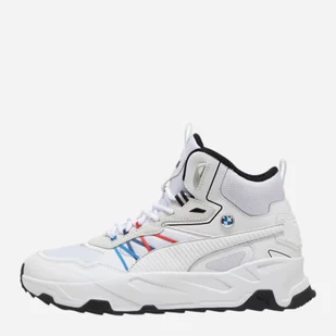 Damskie trzewiki od Puma BMW Mms Trinity Mid Wtr wykonane są z połączenia skóry i materiałów syntetycznych, co zapewnia doskonałą odporność na zużycie oraz ochronę przed niesprzyjającymi warunkami atmosferycznymi. Skóra dodaje elegancji i trwałości, a elementy syntetyczne zwiększają wodoodporność i zapewniają dodatkową lekkość. Wysoka żłobiona podeszwa gwarantuje doskonałą przyczepność, co jest szczególnie ważne w zimowych warunkach. Buty są ocieplane, co zapewnia dodatkowy komfort i ochronę przed zimnem. Dynamiczny design z firmowymi elementami i brandingiem BMW nadaje butom nowoczesny wygląd