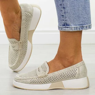 Beżowe ażurowe mokasyny damskie