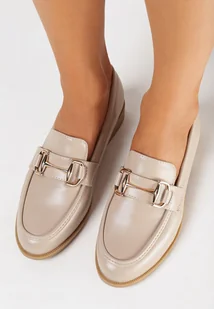 Beżowe Klasyczne Mokasyny z Paskiem i Metalową Ozdobą Tirnal