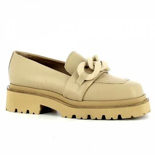 BEŻOWE SKÓRZANE DAMSKIE MOKASYNY NA GRUBEJ PODESZWIE Z OZDOBĄ