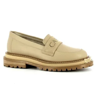 BEŻOWE SKÓRZANE MOKASYNY DAMSKIE NA PLATFORMIE