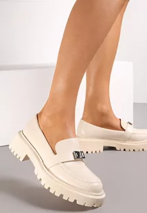 Beżowe Mokasyny na Platformie z Metalową Klamerką Mithe