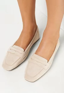 Beżowe Płaskie Mokasyny z Imitacji Zamszu Testis
