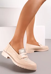 Beżowe Wsuwane Mokasyny na Płaskim Obcasie Ovelleme