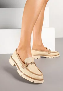 Beżowo-Brązowe Mokasyny z Klamrą Morira