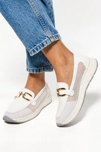 Białe mokasyny ażurowe na platformie damskie z ozdobą Casu M24X3-W-41