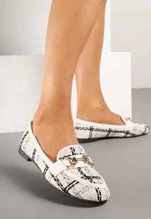 Białe Mokasyny Tweedowe z Metaliczną Aplikacją Rivlia