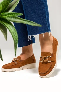Camelowe mokasyny damskie Sergio Leone na koturnie ozdobny łańcuch PB227-CA