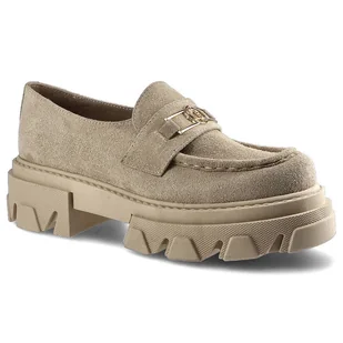 Beżowe półbuty CARINII B5984_-O17-000-000-E33 Beż to efektowny model z ekskluzywną broszką. Błyskotliwa cholewka została wykonana ze skóry naturalnej i zamsz...