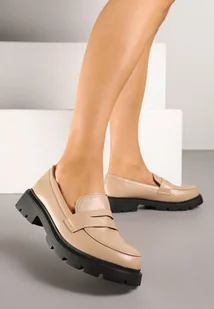 Ciemnobeżowe Eleganckie Mokasyny z Imitacji Skóry Unasse