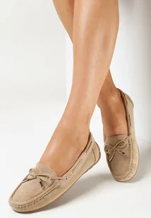 Ciemnobeżowe Mokasyny na Płaskiej Podeszwie z Kokardką Ariteia