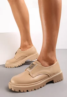 Ciemnobeżowe Mokasyny na Platformie z Geometryczną Aplikacją Tindara