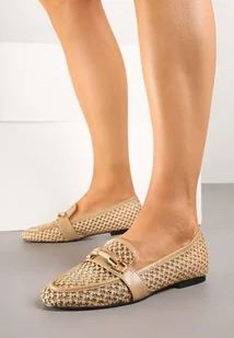 Ciemnobeżowe Siateczkowe Mokasyny z Metaliczną Klamrą Zefora