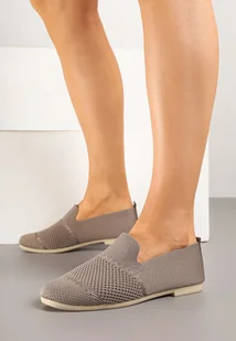 Ciemnobeżowe Mokasyny z Elastyczną Cholewką Zdobione Perforacją Itelliria