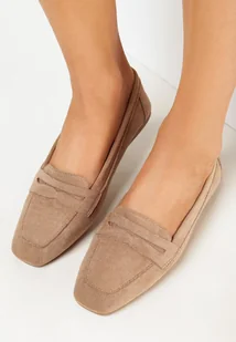 Ciemnobeżowe Płaskie Mokasyny z Imitacji Zamszu Testis