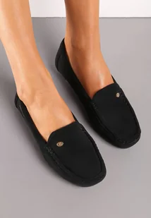 Czarne Klasyczne Mokasyny z Ekozamszu z Wkładką ze Skóry Naturalnej Nemese