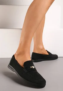Czarne Klasyczne Mokasyny z Imitacji Zamszu z Klamerką Dorellia