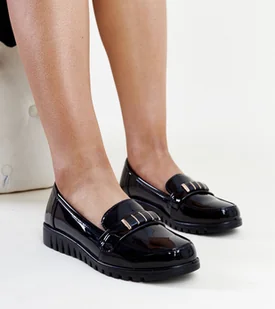 Czarne lakierowane mokasyny z ozdobnym paskiem Marlisa -37