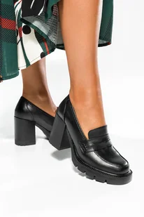 Czarne mokasyny damskie na słupku z bieżnikowaną platformą Casu JW24X7-B-39