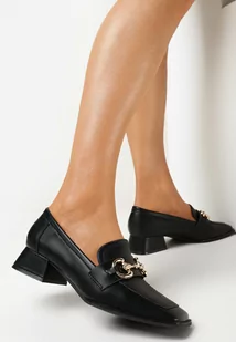 Czarne Mokasyny na Niskim Obcasie z Kwadratowym Noskiem Nansoa