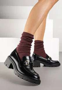 Czarne Mokasyny na Obcasie z Metaliczną Klamrą Eriste