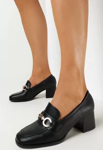 Czarne Mokasyny na Słupku z Kwadratowym Noskiem i Metalową Ozdobą Abrey