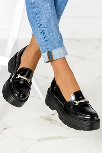 Czarne mokasyny skórzane damskie na platformie półbuty z metalową ozdobą PRODUKT POLSKI Casu model 08341-NO to połączenie elegancji, trwałości i maksymalnego...