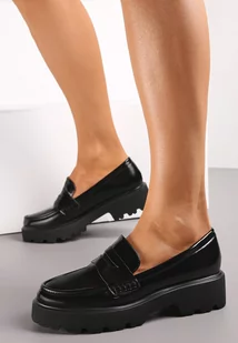 Czarne Mokasyny z Imitacji Skóry na Grubej Podeszwie Inran