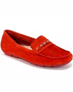 Czerwone mokasyny p����buty damskie Carinii B5326-M99 sk��ra zamszowa r.39