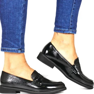 Damskie Mokasyny Skórzane Półbuty Sergio Leone 25112-S Czarne Lakierowane