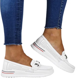 DAMSKIE MOKASYNY SKÓRZANE VINCEZA AŻUROWE 95331 BIAŁE