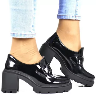 Damskie Półbuty Skórzane Mokasyny Na Słupku Obcasie Filippo Dp4785 Czarne Lakierowane