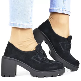 Damskie Półbuty Skórzane Mokasyny Na Słupku Obcasie Filippo Dp4785 Czarne Zamszowe