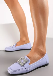 Fioletowe Płaskie Mokasyny z Kwadratowym Noskiem Ozdobionym Kryształkami Celeshta