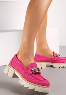 Fuksjowe Mokasyny z Kryształami i Wkładką ze Skóry Naturalnej Zaidy