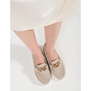 Odkryj elegancję i komfort w wyjątkowych mokasynach Goodin! Te beżowe skórzane buty to idealne połączenie klasyki i nowoczesnych trendów, które z pewnością przyciągną uwagę. Dzięki ażurowym detalom oraz efektownemu łańcuchowi, stanowią doskonałe dopełnienie casualowych stylizacji na co dzień. . Ich wsuwana konstrukcja sprawia, że noszenie ich to czysta przyjemność wystarczy je założyć i wyjść. Zabudowany zapiętek i okrągły nos zapewniają odpowiednie wsparcie i wygodę podczas użytkowania. Niezależnie od okazji, mokasyny te dostosują się do Twoich potrzeb, oferując styl i komfort.