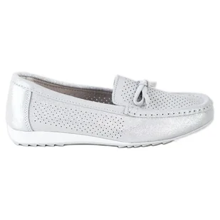 Goodin Skórzane Buty Z Kokardą srebrny szare. Sprawdź na butymodne.pl! Mokasyny damskie marki Goodin idealny wybór dla kobiet ceniących wygodę i styl w świetnej cenie. Promocje oraz darmowa dostawa.
