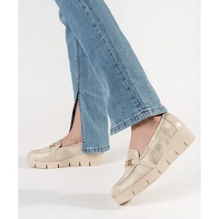 Przedstawiamy Państwu eleganckie i stylowe mokasyny na koturnie od renomowanej marki Goodin. Te złote buty to idealna propozycja dla kobiet ceniących sobie połączenie komfortu z elegancją. Dzięki zapięciu wsuwanemu oraz zabudowanemu zapiętku, zakładanie i zdejmowanie ich staje się wyjątkowo proste. . Wykonane z wysokiej jakości materiałów, z wierzchem z ekologicznej skóry i naturalną skórzaną wkładką, mokasyny zapewniają wygodę noszenia przez cały dzień. Ich okrągły nosek oraz koturn o wysokości 5 cm dodają subtelnego uroku, a również wpływają na stabilność i komfort, co sprawia, że są doskonał