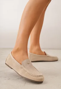 Jasnobeżowe Mokasyny VICES ze Skórzaną Wkładką i Metalową Ozdobą Aquilin