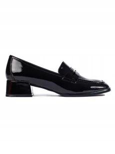 Buty damskie modne i wygodne – idealne na co dzień i specjalne okazje! NOWE - Lakierowane mokasyny na niskim obcasie czarne Sergio Leone 36 Symbol: 84200-W D...