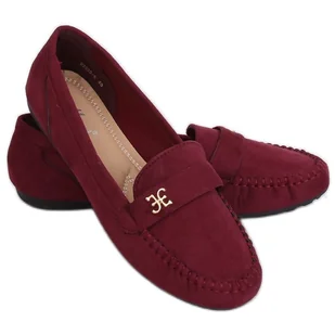 Zamszowe mokasyny damskie. Połączenie klasycznej formy ze stylowymi przeszyciami i złotą ozdobą daje najlepsze efekty : ) Mokasyny cieszą się ogromną popularnością wśród wielbicielek komfortu miękka wkładka wewnętrzna z poduszeczką jest miła dla stopy. Nie czekaj! Materiał zewnętrzny - zamsz ekologiczny. Mokasyny damskie bordowe B2020 Wine czerwone.