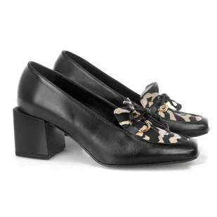 Mokasyny damskie na klocku Karino 3700/043-P CZARNY/BEŻ 40