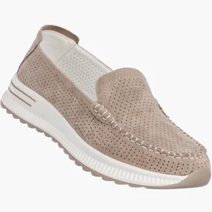 Mokasyny Damskie Skórzane Buty Wsuwane Półbuty Beżowe JEZZI 26PB32-9793 39 Damskie półbuty JEZZI skórzane mokasyny slip-on to wygodne półbuty damskie, lekkie mokasyny oraz stylowe buty wsuwane, które idealnie sprawdzą się na co dzień, do pracy, na spacer i do casualowych stylizacji. Model wyróżnia się perforowaną cholewką, miękkim wykończeniem oraz sportowo-eleganckim designem, dzięki czemu półbuty damskie zapewniają przewiewność i komfort użytkowania. Dzięki elastycznej podeszwie, miękkiej wkładce, lekkiej konstrukcji oraz łatwemu zakładaniu buty gwarantują wygodę, dopasowanie i stabilność przez cały dzień. PARAMETRY I NAJWAŻNIEJSZE INFORMACJE: Skórzane półbuty damskie wysokiej jakości materiał zapewniający trwałość i komfort noszenia Mokasyny damskie slip-on szybkie zakładanie i wygoda użytkowania Perforowana cholewka przewiewna struktura poprawiająca cyrkulację powietrza Lekka podeszwa amortyzacja i komfort podczas chodzenia Miękka wkładka wygoda nawet przy długim użytkowaniu Elastyczna konstrukcja dopasowanie do naturalnego ruchu stopy Styl casual idealne do codziennych i miejskich stylizacji Nowoczesny wygląd połączenie sportowego komfortu i elegancji ROZMIARÓWKA: