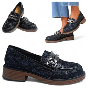Skórzane Mokasyny Damskie Eleganckie wsuwane modne S. Barski Czarne Niebieski metaliczny 36 ____________Kolekcja S. Barski___________ Elegancka oraz wytworna linia, ktora doskonale wpisuje się w panujące trendy. Zainwestuj w styl, który łączy nowoczesność z praktycznością, by każda stylizacja zyskała na wyjątkowości oraz wygodzie. Cechy produktu__________ ✔️ Staranne wykończenie każdego detalu podkreśla jego wysoką jakość i dbałość o estetykę, pasują do jesiennych oraz wiosennych stylizacji; ✔️ Skórzana cholewka oraz wkładka to nie tylko trwałość Twoich butów, ale także łatwość w pielęgnacji, niezwykle przydatna w sezonie wiosenno-jesiennym; ✔️ Optymalny obcas zapewnia komfort oraz stabilność, jednocześnie dodając delikatnej elegancji, pozwalając Ci cieszyć się wygodą bez rezygnacji ze stylu; ______Specyfikacja______ Producent: