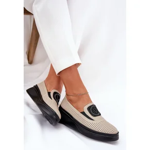 Mokasyny Damskie Skórzane Na Platformie I Koturnie Vinceza 79522 Beżowe beżowy
