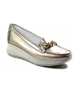 Złote mokasyny skórzane damskie błyszczące na klocku PRODUKT POLSKI Casu 2413-703-NO
