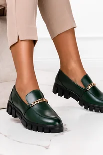 Mokasyny Sergio Leone ze złotym łańcuchem zielone MK755-39
