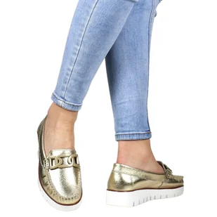 Mokasyny Ze Skóry Z Łańcuchem Na Grubej Podeszwie Filippo Dp3334 Złote